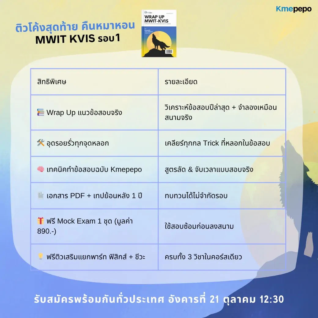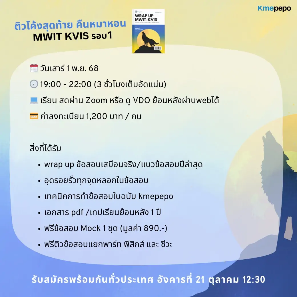 ชื่อคอร์ส: MWIT KVIS รอบ 1 – ติวโค้งสุดท้าย คืนหมาหอน